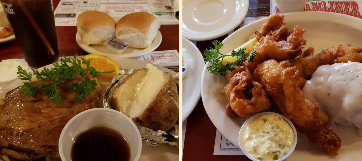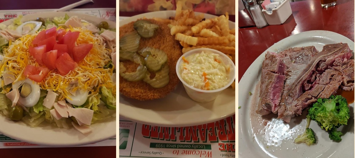 Streamliner Family Restaurant offers a wide variety of options. Enjoy hamburgers, pizza, barbeque, and desserts like pies and milkshakes. There’s something for everyone in the family.