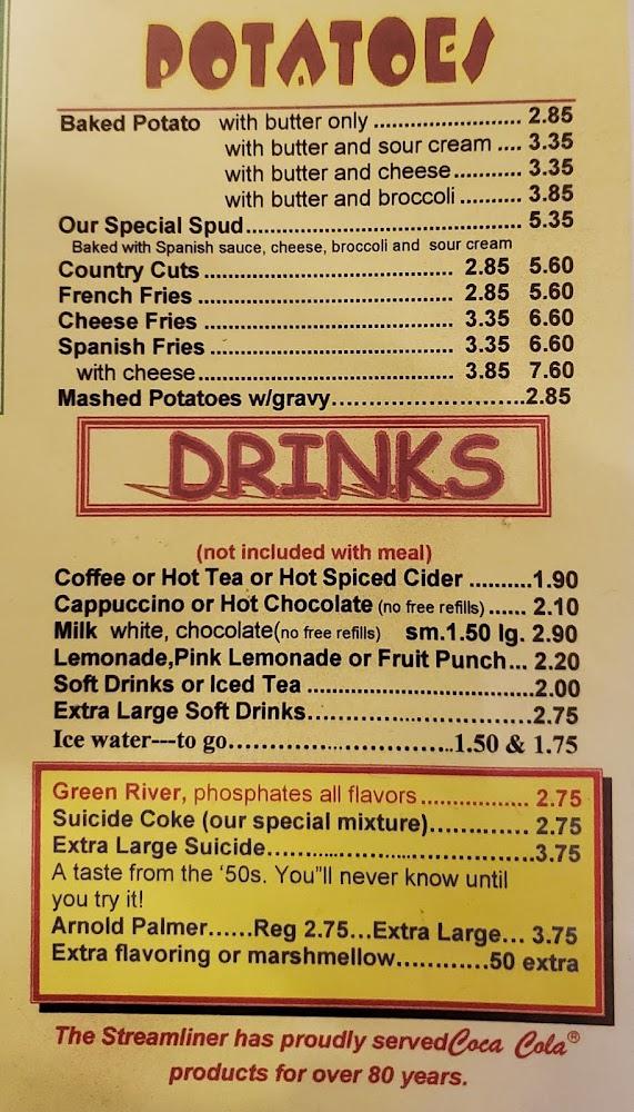 The menu at Streamliner is extensive, featuring classic American comfort food. Popular items include burgers, sandwiches, and barbeque options. Each dish aims to evoke comfort and nostalgia.